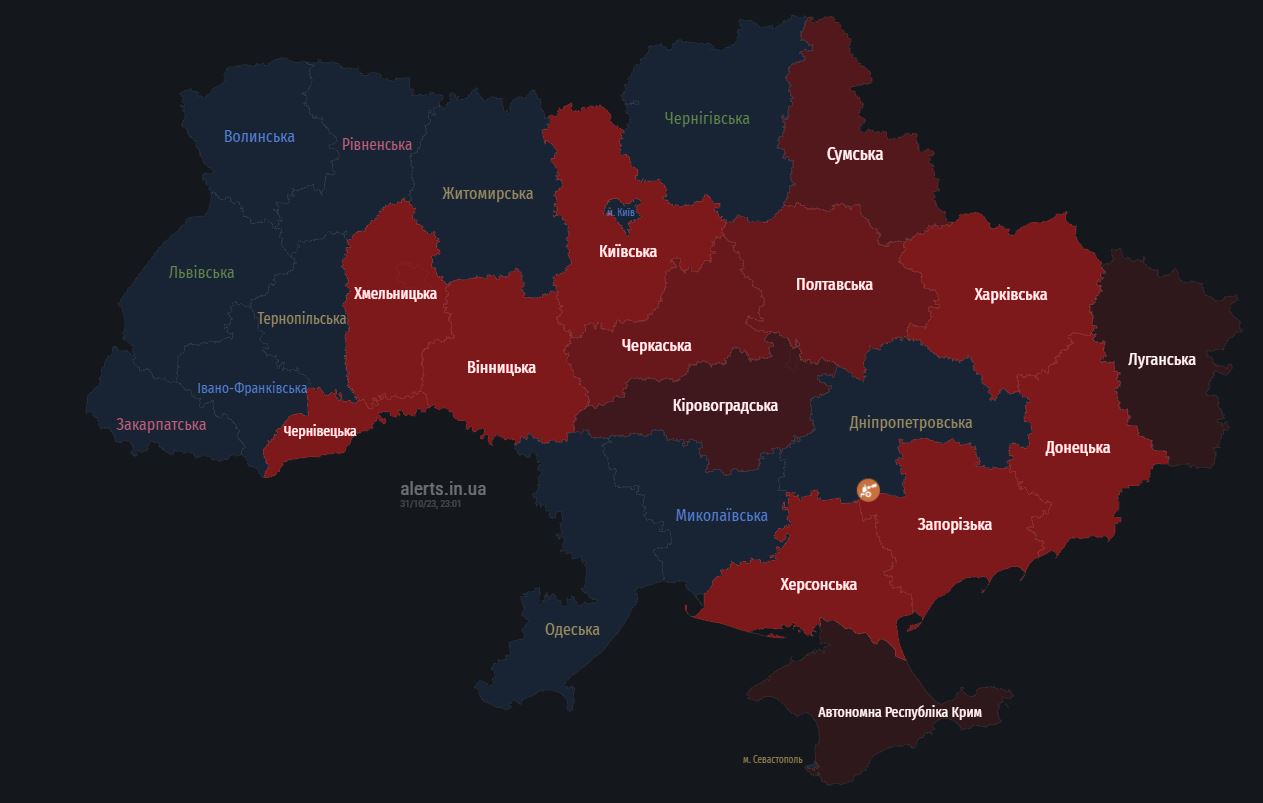 Уже в 23:37 стало известно о новой группе дронов. Жителей Николаевской, Кировоградской, Полтавской и Харьковской областей предупредили об опасности. Также тревогу объявили в Сумской, Киевской и Хмельницкой областях.