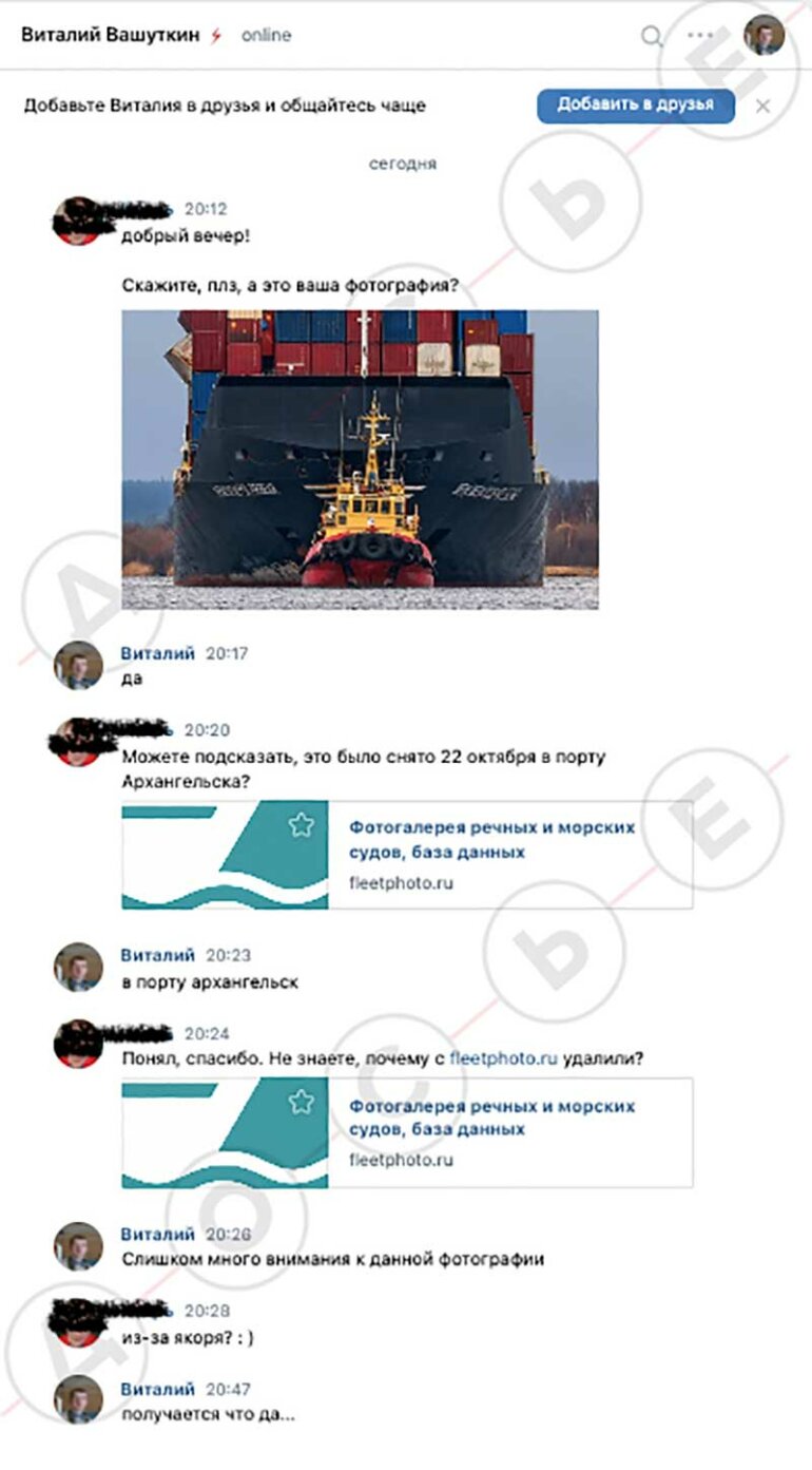 Расследователи Центра обнаружили, что компания, владеющая одним из этих кораблей, имеет тесные связи с мурманским спецназом ФСБ, потенциально ответственным за подводные операции. А на первый взгляд мирный рыбный рефрижератор, как выяснилось, обладает специальным оборудованием для подводных работ, участвует в российском гособоронзаказе и швартуется возле военных баз — а сразу после этого отправляется в рейс в европейские порты. Владельцы судна, вероятно, лично знакомы с главнокомандующим ВМФ России. Наконец, в шпионскую деятельность могут быть вовлечены суда крупнейшего российского рыбного холдинга — группы «Норебо». Группа стала лидером рынка благодаря близкой дружбе основателя с однокурсником Путина Николаем Егоровым.