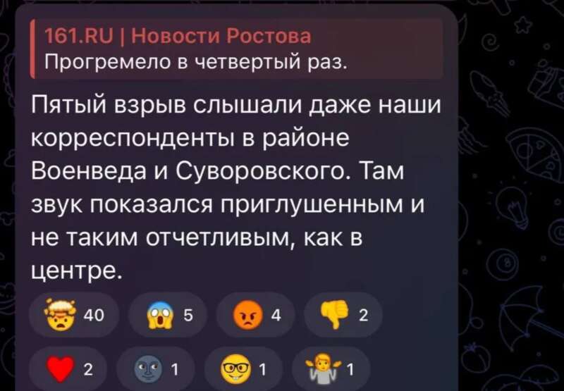 Россияне писали, что взрывы раздавались с разницей в несколько минут. Сильнее всего их было слышно в центре города. В других районах Ростова они были гораздо тише, однако тоже испугали жителей.