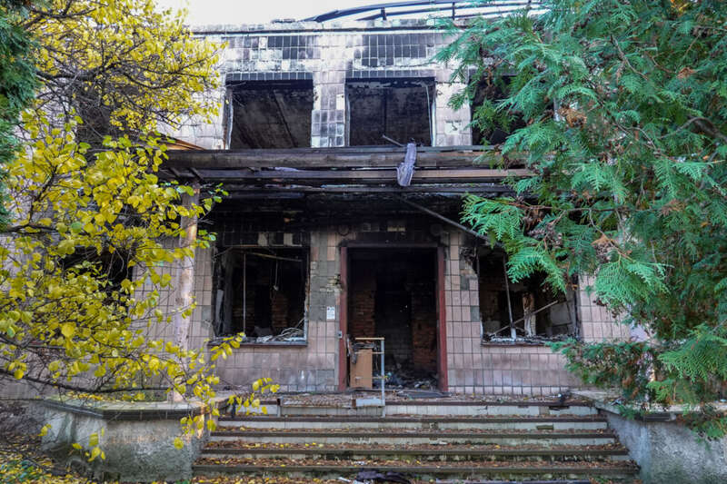 Разрушено здание суда в Бородянке, 2 ноября 2023 года. Фото: Татьяна Козак, Решетки
