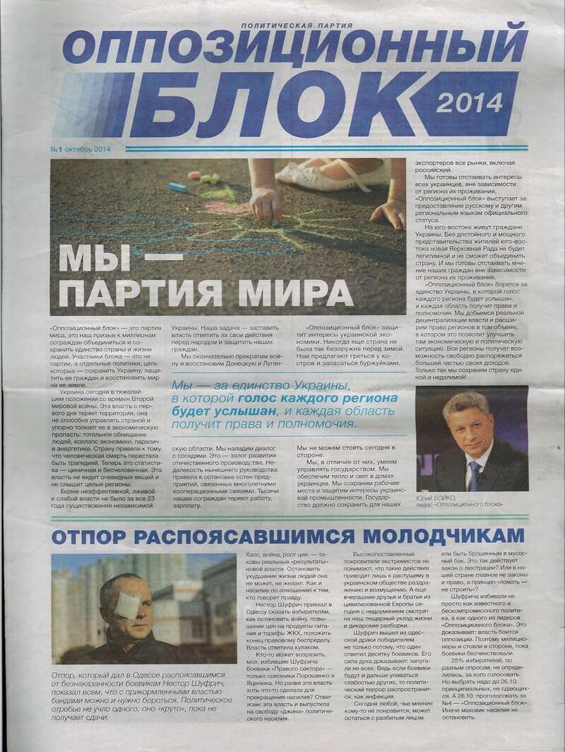Агитация Юрия Бойко и "Оппозиционного блока" с типичными клише российской пропаганды о "боевиках", "бандах" и "молодчиках", 2014 год. Источник: "ПолитХаб"
