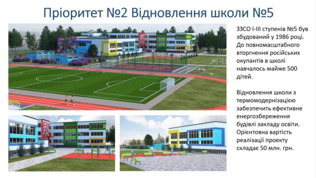 В прошлом году Тростянец находился в российской оккупации в течение месяца. Известно, что там пострадали многие здания. Данных о состоянии школы №5 нет, но проект ее восстановления выглядит следующим образом: