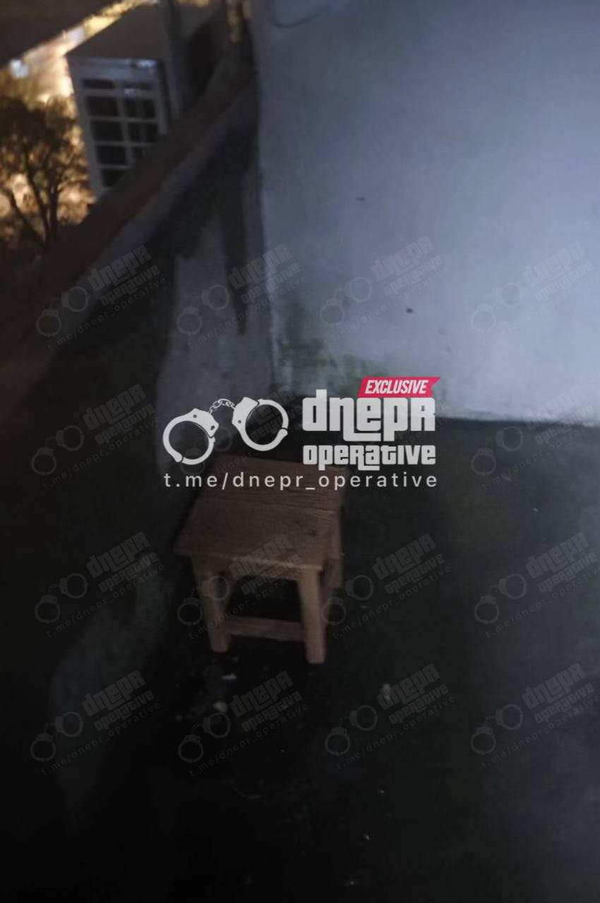 На фото - стул, который, вероятно, женщина поставила, чтобы перелезть ограждение балкона.
