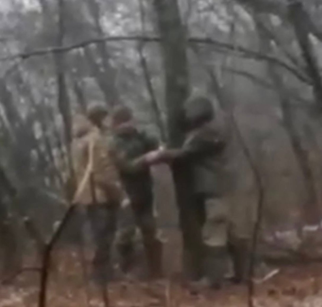 В сети обнародовали видео, как российские оккупанты издеваются над сослуживцем, который отказался воевать. Его привязали к дереву и заставляли идти на штурм.