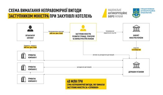 В январе 2023 года Национальное антикоррупционное бюро Украины задержало на взятке замминистра развития общин и территорий Василия Лозинского. По данным следствия , он взял 400 000 долларов за решение вопроса о закупке генераторов.