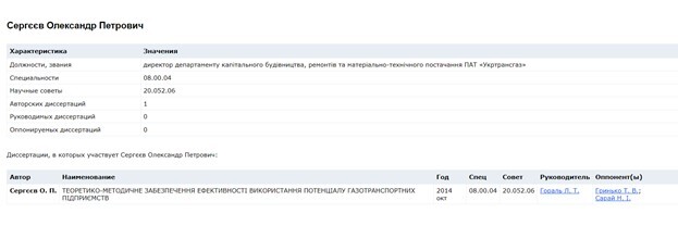 Точной информации о Сергееве очень мало. К примеру, из системы поиска плагиатов в научных работах удалось узнать, что Сергеев Александр Петрович в 2014 году действительно работал директором департамента капитального строительства, ремонтов и материально-технического снабжения ПАО «Укртрансгаз» и писал диссертацию под названием «Теоретико-методическое обеспечение эффективности использования потенциала газотранспортных предприятий».