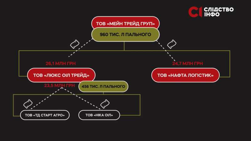 По мнению официального следствия, почти треть из приобретенного топлива более чем на 14 миллионов гривен присвоила «Мейн Трейд Групп». Руководитель компании Александр Бескокотов проигнорировал сообщения в мессенджере и заблокировал журналистов.
