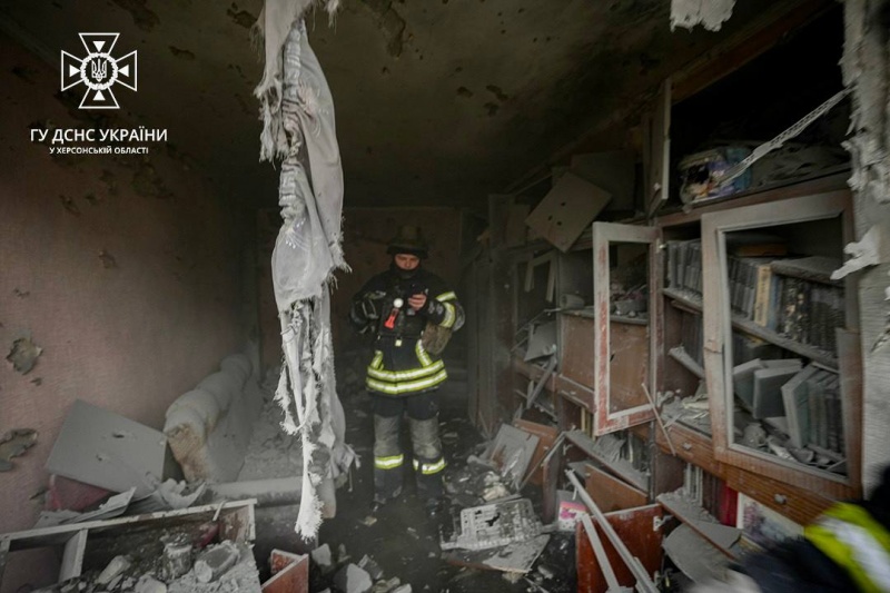 Спасатели сообщили, что сегодня жители жилых кварталов Херсона снова оказались под обстрелом. Один из вражеских снарядов попал в многоэтажку.