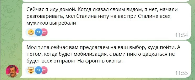 Под одним из постов Telegram-канала, посвященного мобилизации в "ДНР", ситуацию описал житель Новоазовского района. По его словам, он отказался добровольно идти воевать, на что услышал "Сталина вас нет!", мол, "при нем всех мужиков выгребали". Однако этому местному жителю пока удалось не стать пушечным мясом – в отличие от его земляков.