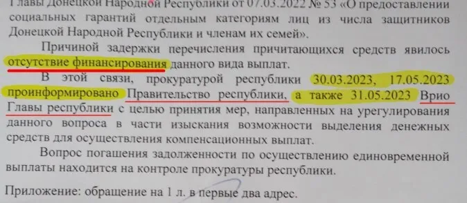 Но так называемая прокуратура "ДНР" на возмущенное обращение прямо заявила, что нет финансирования.