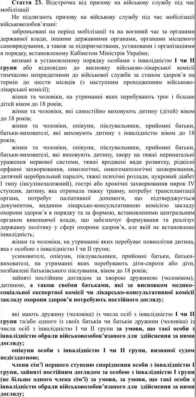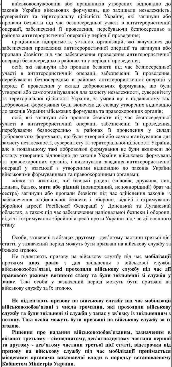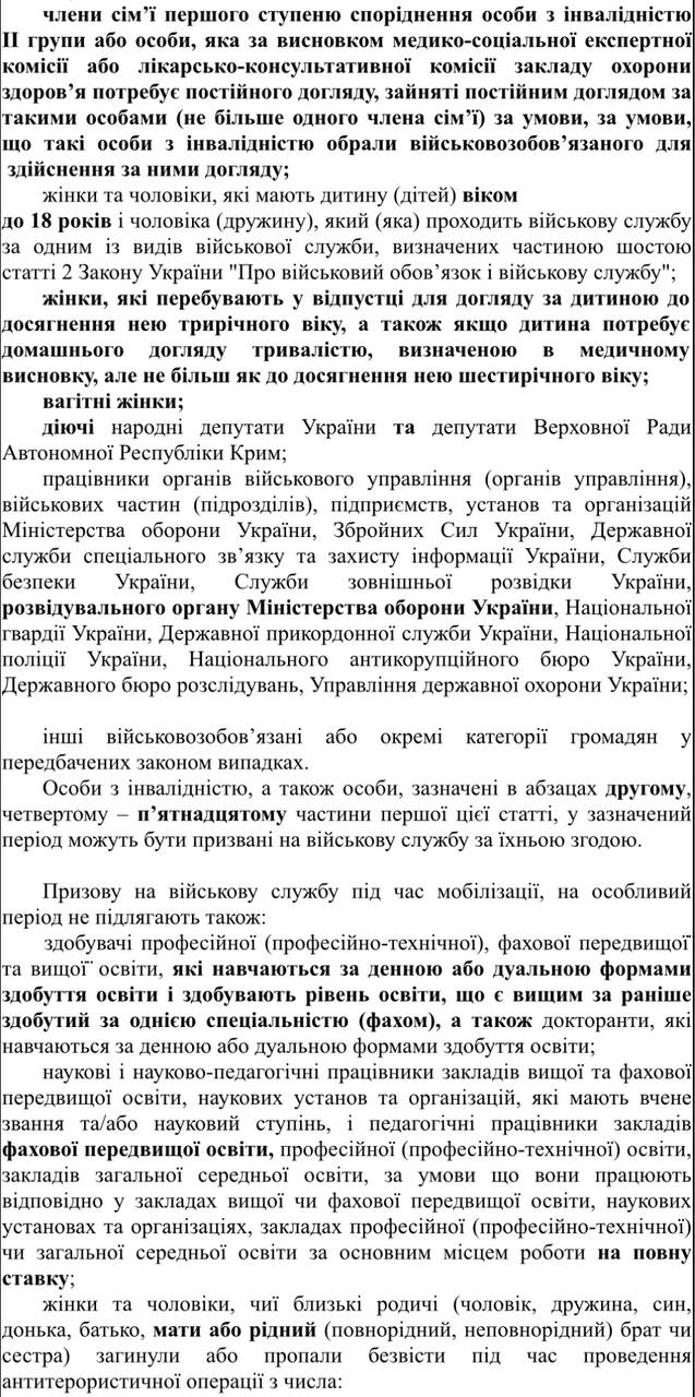 Стало известно, кто из украинцев будет иметь право на отсрочку согласно новому законопроекту по мобилизации, военному учету и прохождению военной службы, который Камбин внес в Верховную Раду Украины.