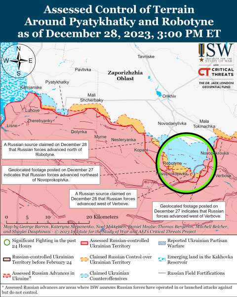 Украинские силы удерживают позиции на восточном (левом) берегу Херсонской области по состоянию на 28 декабря, но ни российские, ни украинские войска не добились подтвержденных успехов в этом районе.