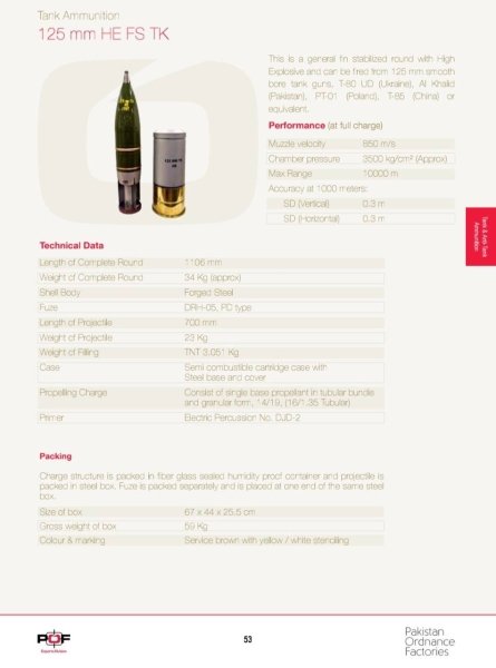 Указанный боеприпас — это снаряд общего назначения с фугасно-фугасным веществом, которым можно стрелять из 125-мм гладкоствольного танкового орудия Т-80 УД (Украина), Алхалид (Пакистан), ПТ-91 (Польша), Т-85 ( Китай) или аналог.