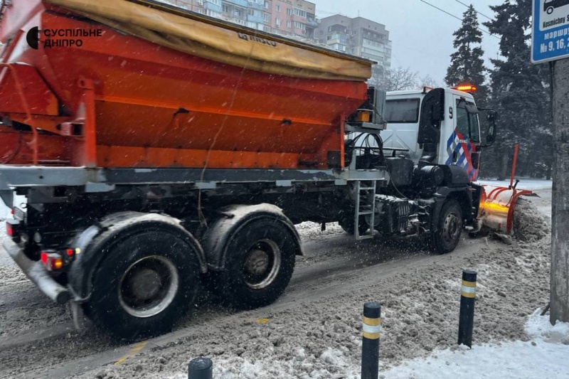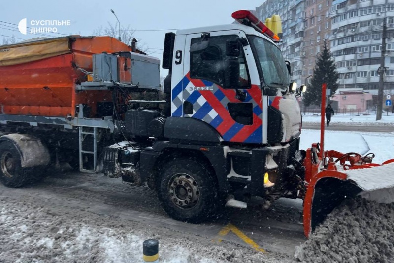 Тем временем на улицах Днепра из-за непогоды также работает коммунальная техника. Дороги расчищают и посыпают песчано-соляной смесью.