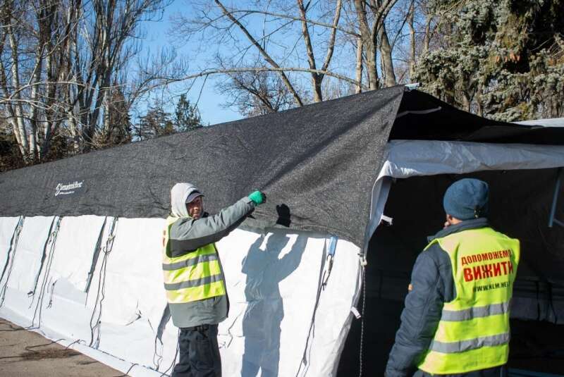 Тем временем на площади Куликово Поле в Одессе волонтеры развернули пункт обогрева.