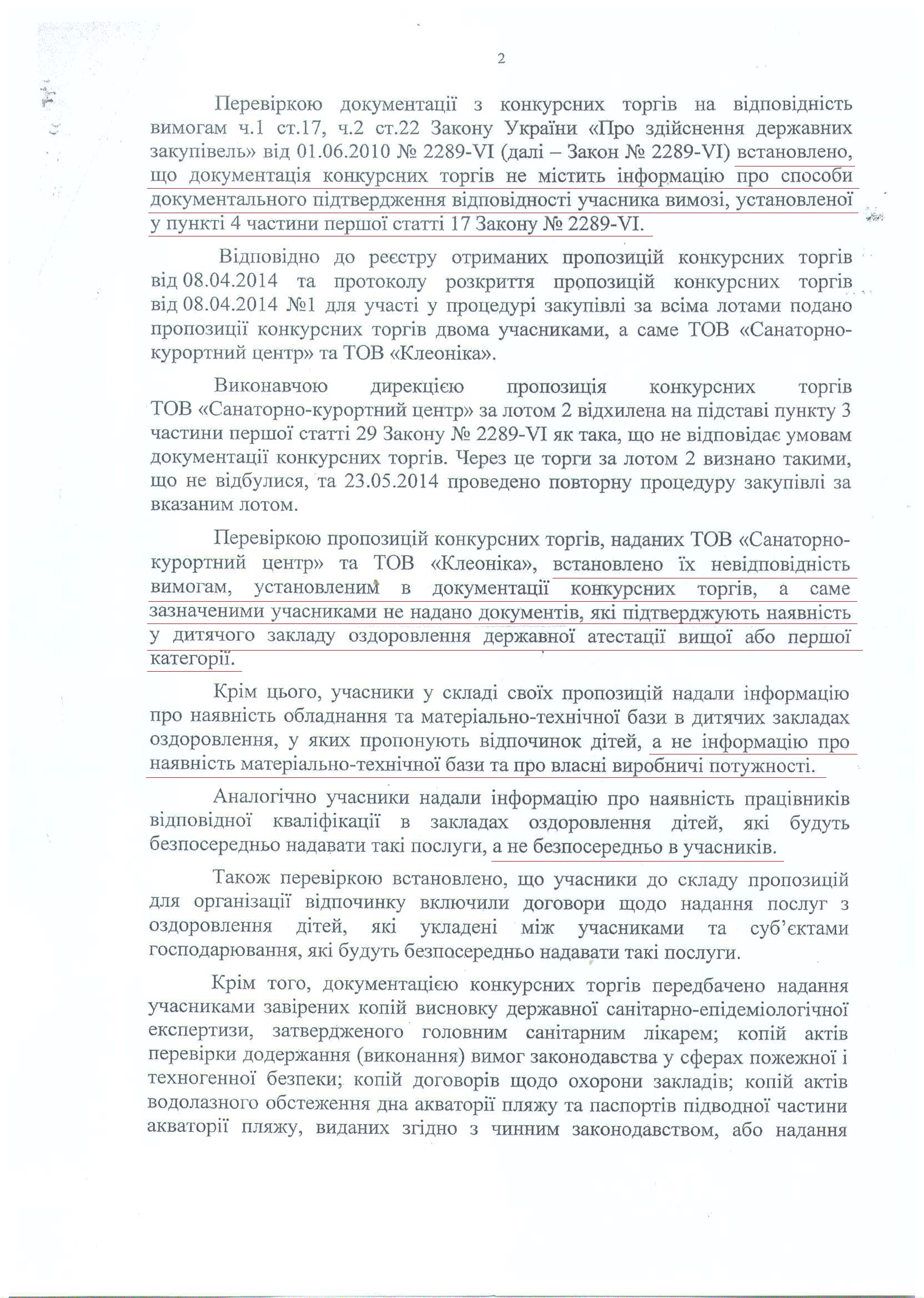 Помимо этого мы обратили внимание читателя на то, что если бы фонд покупал путевки не у посредника, а непосредственно у самих детских лагерей, то сэкономил бы на этих закупках порядка 1,6 миллиона гривен и смог бы купить огромное количество дополнительных путевок для оздоровления детей. Достаточно было внести в условия торгов вполне мотивированный запрет для участия в нем посредников.