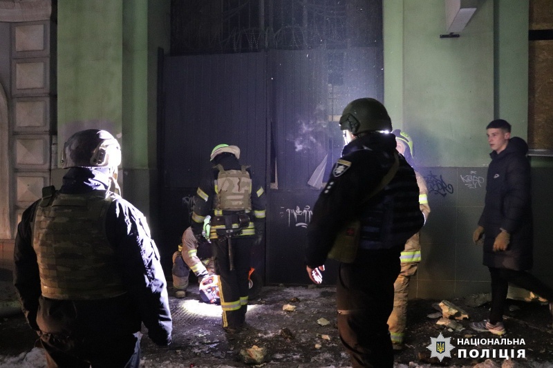 Полиция опубликовала фото последствий вечерних обстрелов Харькова 23 января.