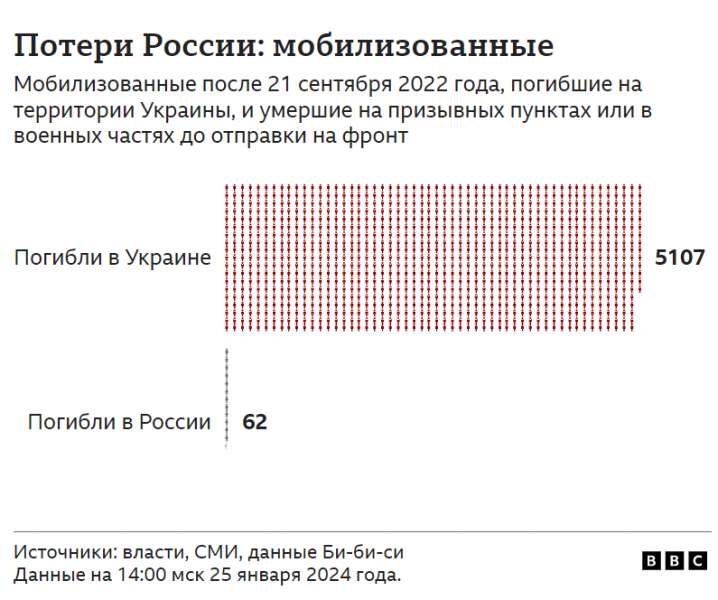 Как отмечает русская служба ВВС, оккупационные войска все еще больше всего полагаются на мобилизованных. Среди так называемых "элитных" российских войск наибольшие потери несут воздушно-десантные войска.