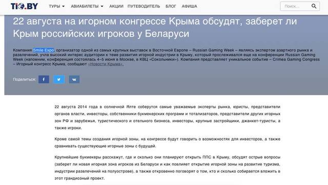 Перед Крымом Smile Expo организовал игровой форум в Москве, после Крыма в Сочи, поэтому компания системна. Зайдите на их сайт с VPN. У них десятки гемблинговых событий в России и Беларуси каждый год.