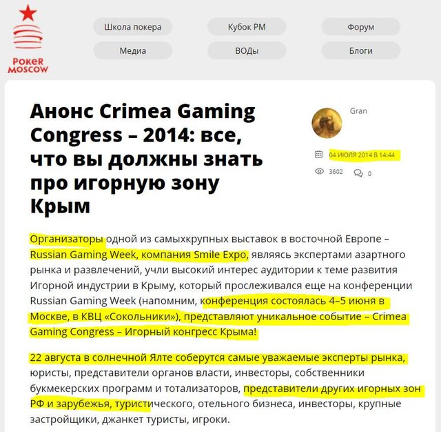 И вот, в августе 2014 года, в оккупированной Ялте была проведена первая Крымская конференция по гемблингу.