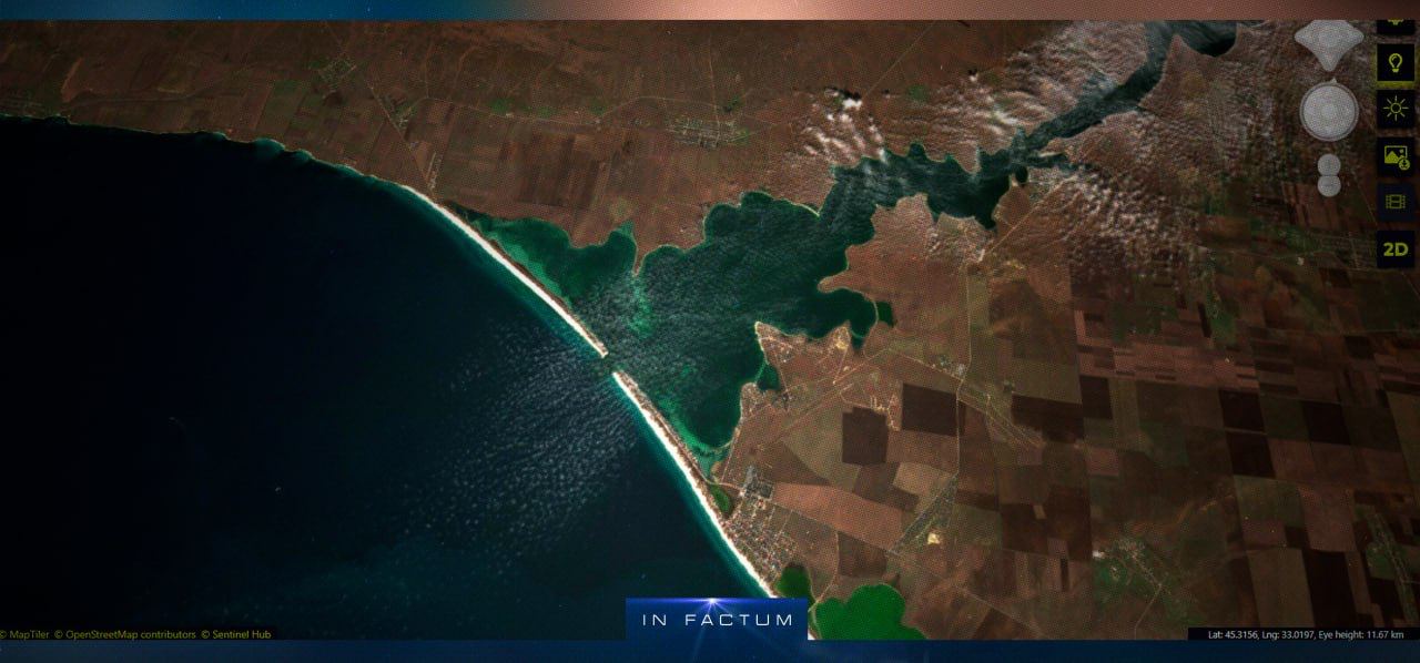 OSINT-аналитик HI Sutton в своем X (Twitter) опубликовал спутниковый снимок, показывающий, что судно затонуло в озере Донузлав или возле него.