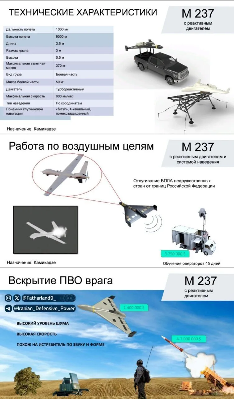 "Правда, цену самого МС 237, или Shahed 238 никак нельзя назвать бюджетной - рашисты "рисуют", что один беспилотник стоит аж 1,4 млн долларов, мобильный пункт управления - 3,75 млн долларов. Этот факт по сути перечеркивает концепция таких беспилотников, которые должны быть максимально дешевыми, а стоимость в полтора миллиона долларов достаточно высока, и тем более, что не всегда для уничтожения таких БПЛА используют именно дорогие зенитные ракеты (а недавно появилась информация, что ВСУ имеют собственные разработки, которые могут как отклонять БПЛА от цели, так и приземлять), – резюмировали в Defense Express.