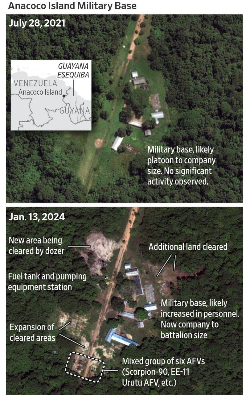 The Wall Street Journal сообщает, что Венесуэла наращивает военный контингент на границе с Гайаной.
