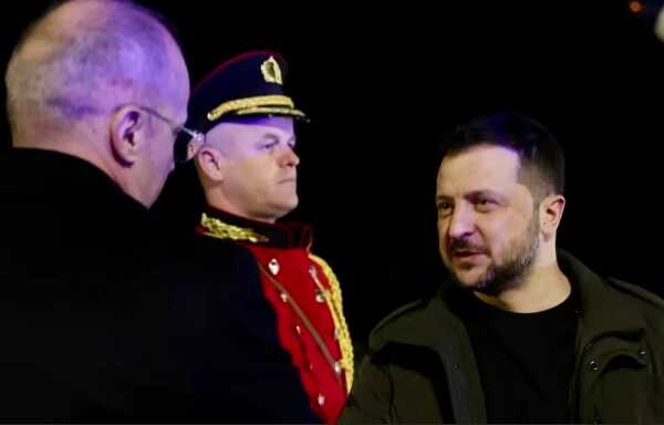 Позже ночью появилось видео приезда президента Зеленского с неанонсированным визитом в столицу Албании.