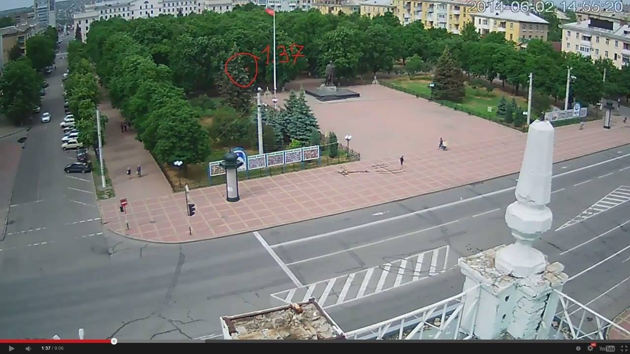 Вот вам видео, которое было удалено с youtube со взрывом Луганской ОДА и немного кадров. Качество не очень, но зато можно явно видеть, что стреляли из Сквера Героев ВОВ, а не с истребителя. Эх, эти ЛНРовцы...