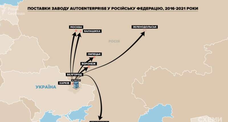 Компания "АЕ Фектори" из группы Autoenterprise занималась поставкой оборудования из Харькова в Россию. Продажи зафиксировали в Липецке, Воронеже, Балашихе, Белгороде, Краснодаре, Москве, Зеленодольске.