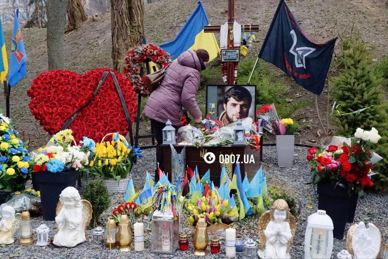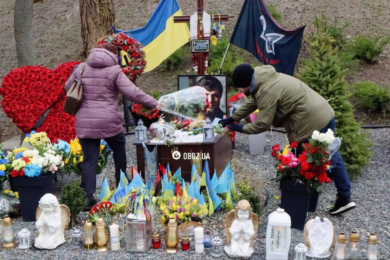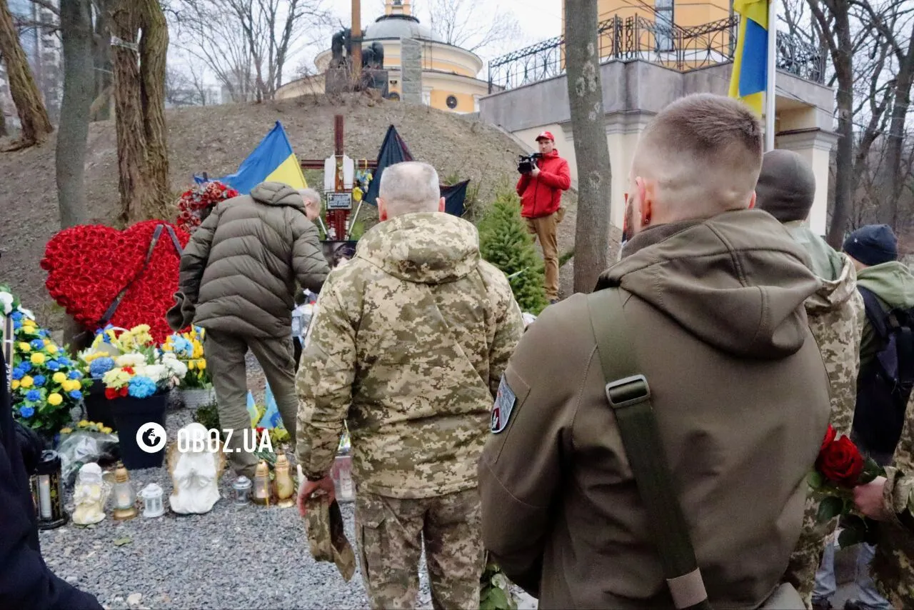 В Киеве в четверг, 7 марта, на Аскольдовой могиле почтили память Героя Украины Дмитрия "Да Винчи" Коцюбайло. Сюда пришли родственники легендарного военного, побратимы и невеста.