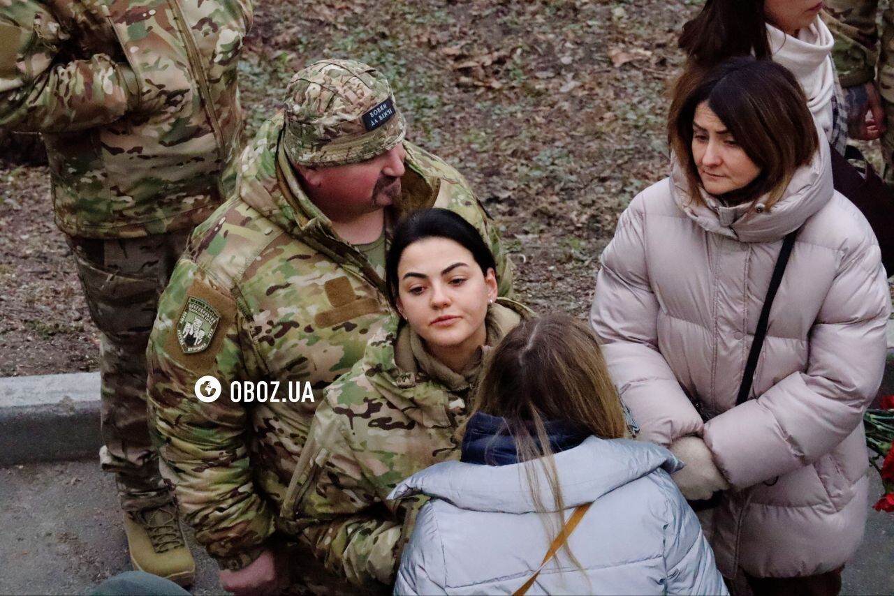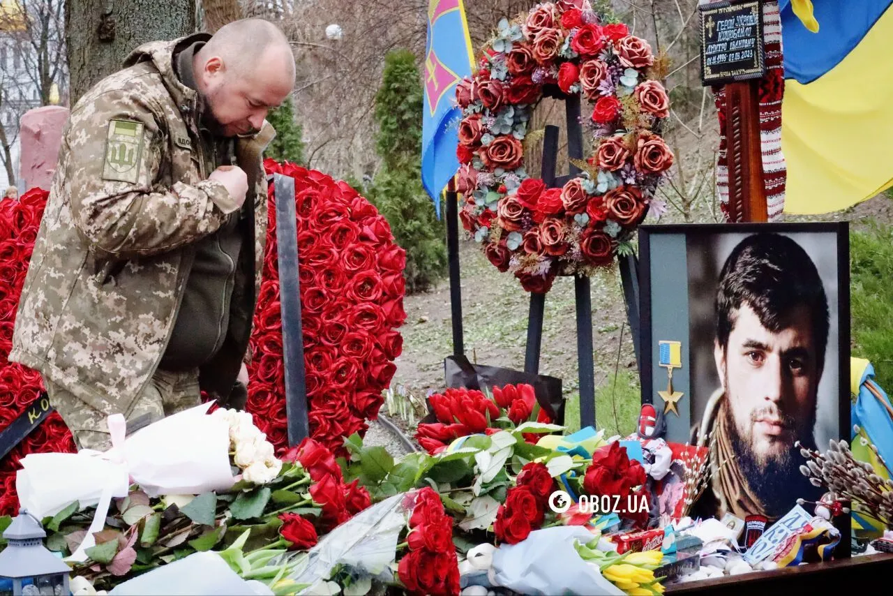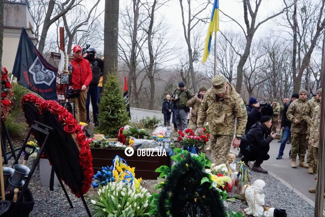 В Киеве в четверг, 7 марта, на Аскольдовой могиле почтили память Героя Украины Дмитрия "Да Винчи" Коцюбайло. Сюда пришли родственники легендарного военного, побратимы и невеста.