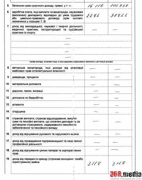В 2014 году доход чиновника составил всего 16 тыс. гривен, при зарплате 2,2 тыс. гривен. Остальная сумма пришлась на аренду имущества и другие виды доходов (предположительно, государственная помощь при рождении первого ребенка – Ред.). Ее супруг заработал 100 тыс. гривен.
