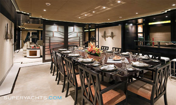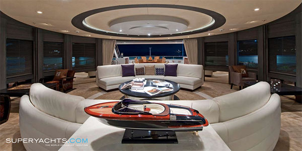 Супер-яхта Коломойского Trident может вместить 14 гостей в семи каютах. Пятнадцать человек команды обеспечат хозяину полный комфорт. Лифт, белый мрамор, черный гранит, вишневое дерево. Для экипажа сделана своя лестница по высоте всех палуб, чтобы обслуживающий персонал не пересекался с отдыхающими. Есть возможность принимать на борт вертолет. Мощность – два дизельных двигателя по 1877 лошадиных сил каждый. Подробнее об этой супер-яхте можно прочитать по-русски, например, на этом сайте.