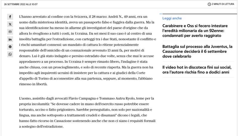 Неизвестно, повлияла ли на итальянских служителей Фемиды эта щемящая публикация, однако 16 ноября 2022 года Кассационный суд на Апеннинах отменил решение о разрешении на выдачу Недзельского, отправив материалы его дела на новое рассмотрение. Ожидалось, что окончательная точка в этом вопросе будет поставлена два месяца назад (23 января 2024 года), впрочем, к публичной плоскости отсутствуют сведения о принятии вердикта в части удовлетворения/отказа в экстрадиции "Львовского". Все это время де-юре Андрей Степанович продолжал находиться на территории Италии, а его юридическим адресом стал офис туринского адвоката Флавио Кампанья.