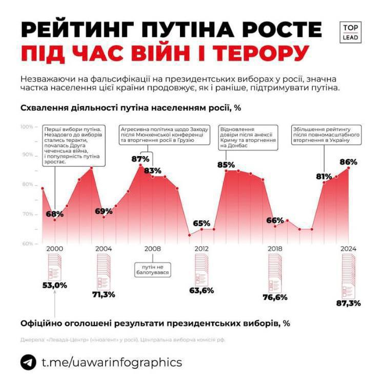 Рейтинг Путина растет во время войн и терактов, – UA War Infographics