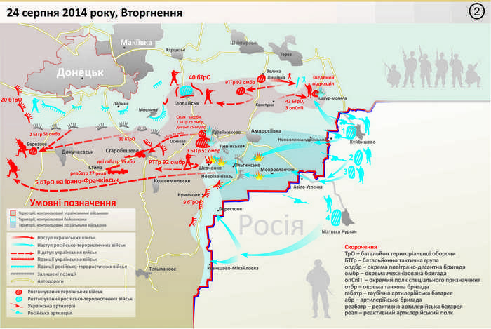 Так, по данным Минобороны, во время боев за Иловайск в августе 2014 года в городе базировались около 250 боевиков, а на границе с Украиной Россиия активно наращивала количество военных, в частности на юг Ростовской области Москва перебросила около 4 тыс. солдат, 20 танков и 30 артиллерийских систем.