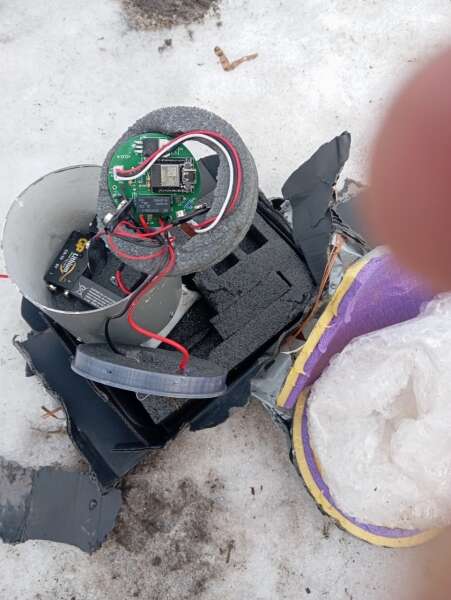 Как только шар оказывается над одним из указанных населенных пунктов, то сбрасывает боевую часть, пережигая нити, подавая электрический ток на куски проволоки. Вместе с ней вниз летит датчик в противоударном кейсе, чтобы создатели аэростата могли проследить, куда россияне отнесут обломки.