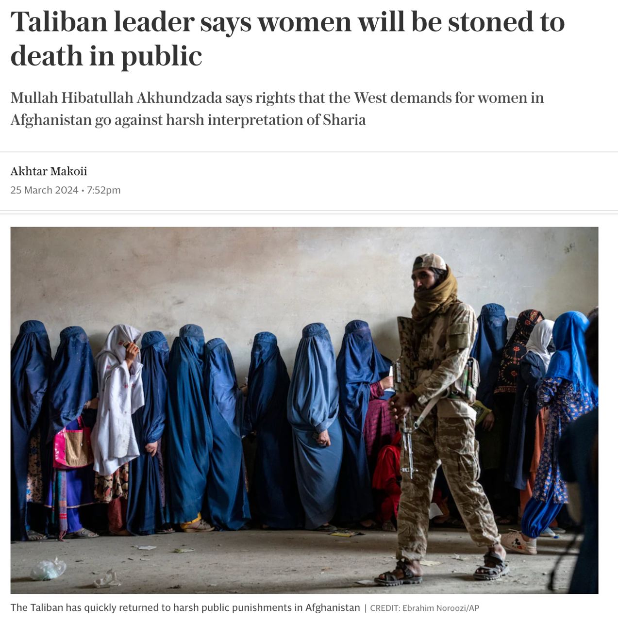 Издание The Telegraph сообщает, что в Афганистане женщин будут публично забивать камнями до смерти за измену.