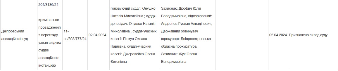 По информации Dетектив-Info, в настоящее время, кроме Руслана Андронова, официальные подозрения объявлены Дмитрию Симону, Антону Белому и двум мужчинам, которых последние привлекли к совершению сделок.