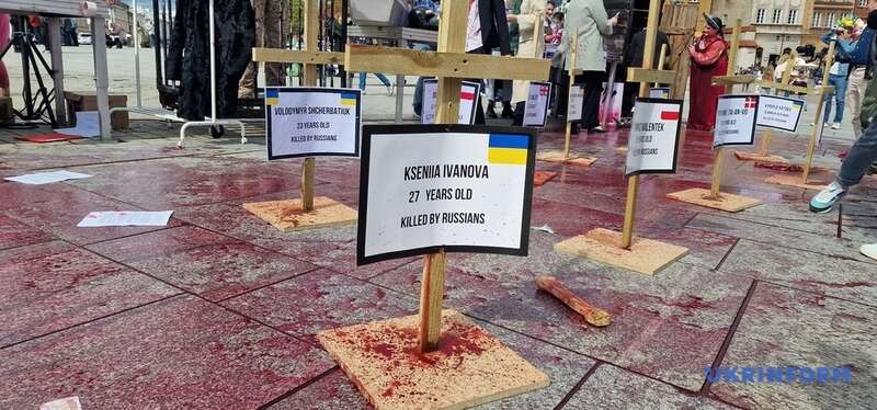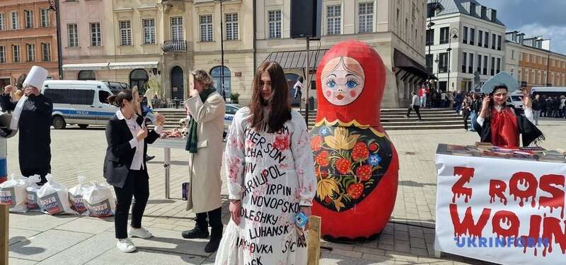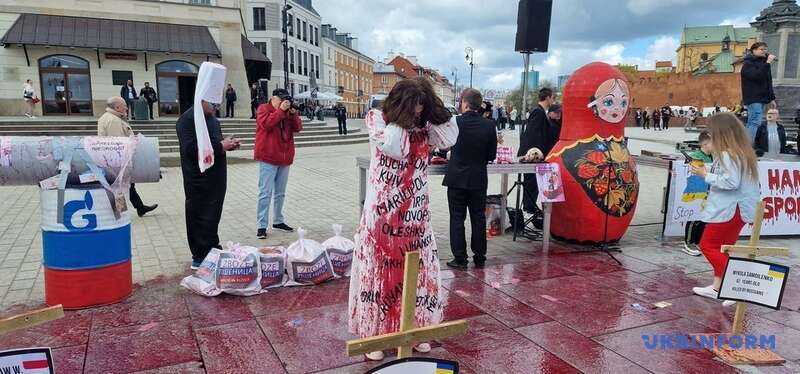 Как вы думаете, что в это же время делают Европейский Союз и Польша? Не поверите - они в дальнейшем торгуют с Россией, пополняя ее бюджет миллиардами евро, главным образом тратящимся на военные нужды страны-террориста. Вот почему мы сегодня здесь! Наша акция – это громкое заявление о том, что преступления против человечества нельзя игнорировать или умалчивать из-за финансовых интересов. Торговля с Россией – это выбор. Выбор финансирования геноцида, террора и убийств украинцев. Все это в прямом смысле – танцы на костях и мы, как граждане ЕС, с этим не соглашаемся, поэтому требуем немедленного эмбарго ЕС на всю российскую продукцию», – подчеркнула Панченко.