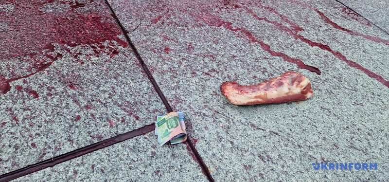 Акция стала выразительным символом протеста против неоправданного продолжения торговли стран ЕС с государством-агрессором. Организаторы акции призвали немедленно наложить эмбарго на всю российскую продукцию в ЕС и прекратить бизнес в крови.