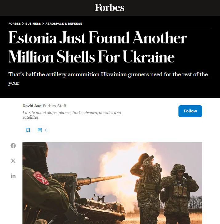 Forbes: Эстония нашла еще один миллион снарядов для Украины