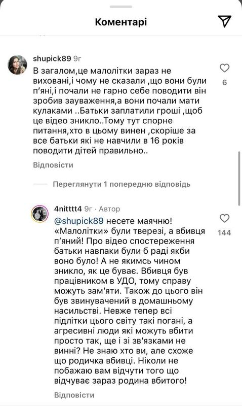 На скриншотах — комментарии под постами девушки, посвященными смерти подростка. Часть пользователей считают, что это было непреднамеренное убийство.
