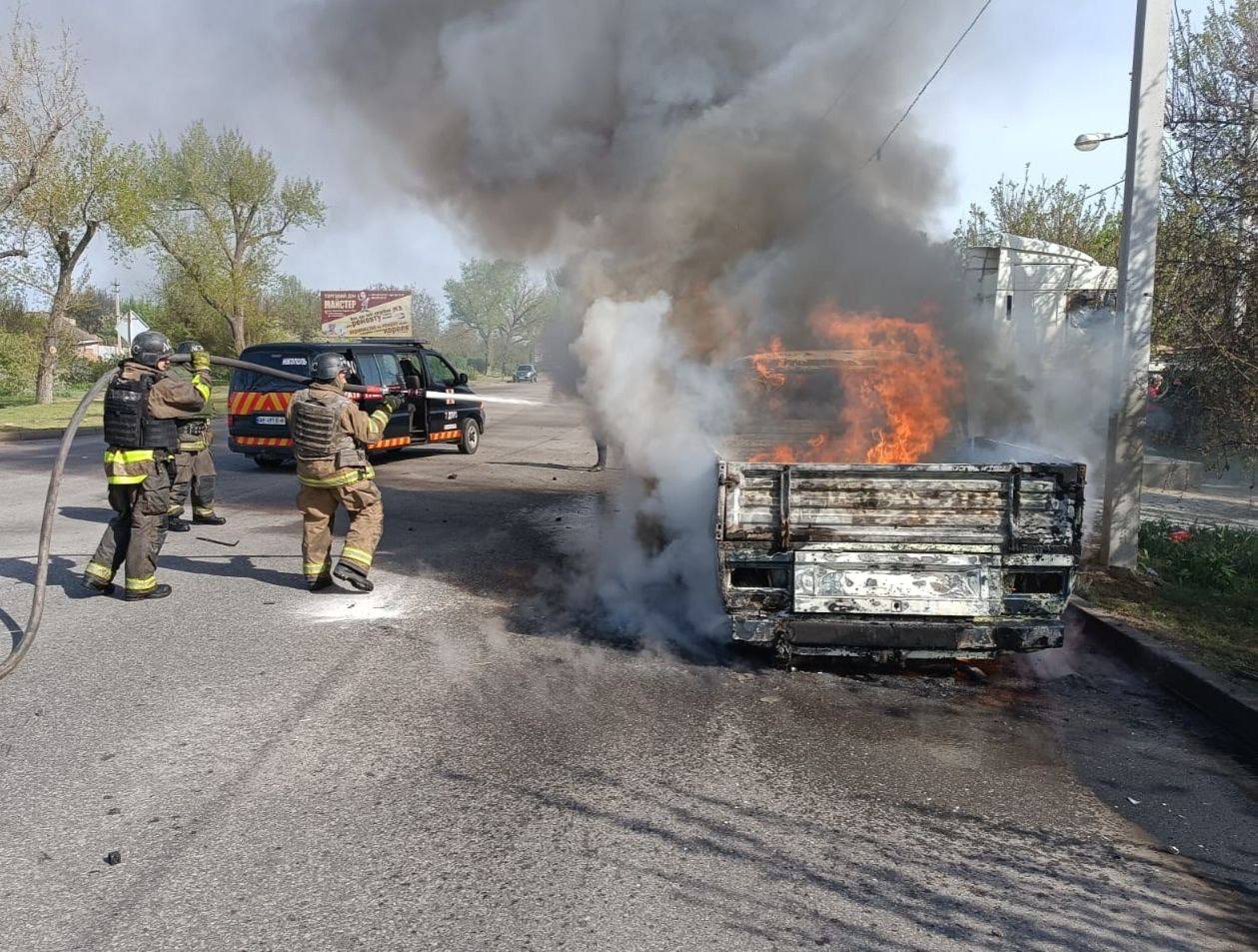 Отмечается, что из-за атаки произошло возгорание. Повреждены два автомобиля. Остальные детали выясняются.