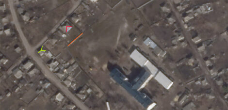 На карте обозначены главные места в Капитоловке, где размещались военные РФ и т.н. "ЛНР". Источник: спутниковый снимок Planet Labs, 15 мая 2022 г.