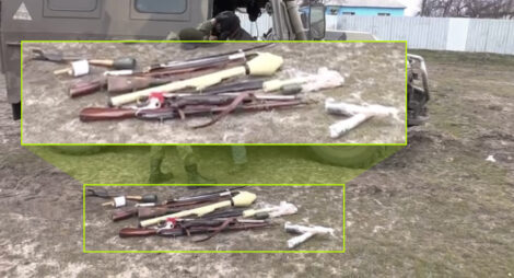 Еще одной отличительной особенностью этого военного является автомат, который он всегда имел с собой на нескольких видео, в том числе на видео из школы №2. Использовав эти материалы, расследователи Truth Hounds установили, что с высокой вероятностью, его оружие относится к "двухсотой серии" АК. В этом случае это был АК-200.