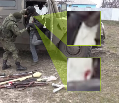 Кроме того, OSINT-анализ подтверждает, что задержанное гражданское лицо на видео является Владимиром Вакуленко, а рядом с ним находятся российские военнослужащие. Само видео снято на территории Изюмской школы №2, где дислоцировались российские военные и спецслужбы, и где была устроена застенка.