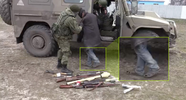 Более того, этот самый военнослужащий, выводивший Владимира из Тигра-М, был за рулем Тигра-М на видео от 2 апреля 2022 года.
