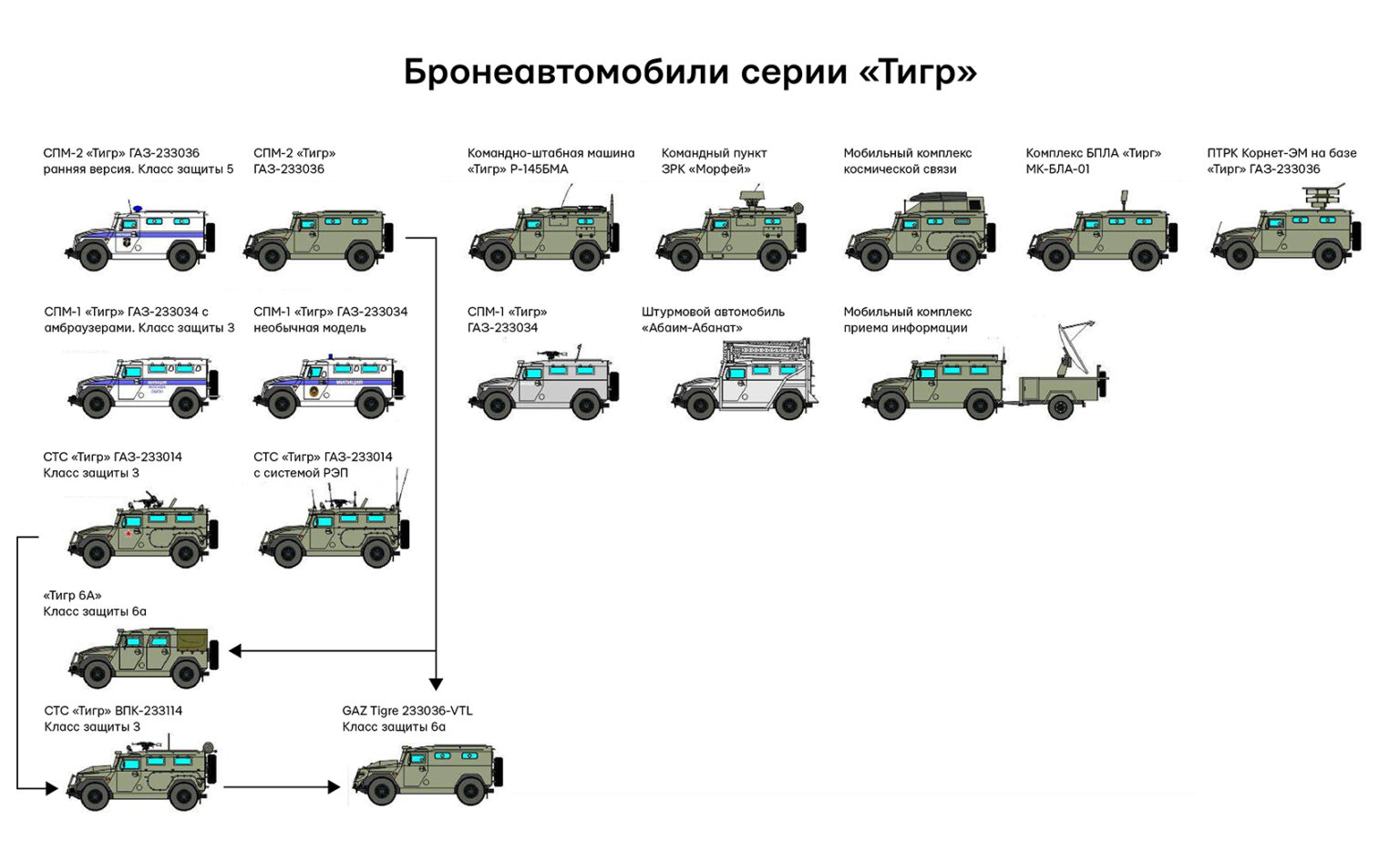 Первым идентифицирующим признаком бронеавтомобиля типа Тигр-М является указанная выше горбатая форма кузова, которая характерна только для этой модификации со всей линейки Тигров.